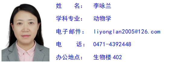 李咏兰,女,汉族,博士,教授。专业型、学术型研究生导师,博士生导师,蒙古国国立教育大学博士生导师。现任教于bv伟德国际1946。现任中国解剖学会人类学分会副主任,内蒙古解剖学会副理事长,《人类学学报》《解剖学报》编委。主讲“人体及动物生理学”(自治区精品课程负责人)、“高级动物生理学”、“人体组成学”、“生理学研究进展”等课程。主要从事民族学与人类生物学交叉学科研究,采用宏观体质人类学与微观分子遗传学、人类生物学与文化人类学研究相结合的方法,对分布在不同生态环境的各民族进行人类生物学研究。主持完成国家自然科学基金项目3项、科技部基础性工作专项1项,内蒙古自然科学基金项目2项。承担完成国家自然科学基金重点项目1项、国家自然科学基金项目5项、内蒙自然科学基金项目6项。目前正在主持国家重点研发计划战略性科技创新合作项目“人类表型组测量技术及表型数据跨尺度关联合作研究”(2020YFE0201600,167万,2020.6-2024.12)、国家自然科学基金面上项目“基于人体测量与田野调查的西北民族走廊16个族群人体组成成分的研究”(32071183,58万,2021.1-2024.12)。发表学术论文110余篇,其中SCI收录15篇,EI收录5篇。出版学术专著3部。多次获得bv伟德国际1946优秀硕士生导师称号,指导的本科生、研究生多人获得校级或自治区优秀学位论文。