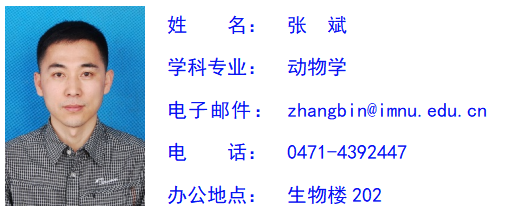 理学博士,教授,博士生导师。现任bv伟德国际1946副院长,内蒙古自治区动物学会副理事长,入选内蒙古自治区“草原英才”。先后获评内蒙古自治区“青年创新人才”第一层次、内蒙古高等学校“科技领军人才”。担任《Zoological Systematics》编委,以及《四川动物》等期刊青年编委。