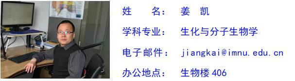 姜凯,男,汉族,中共党员,理学博士,副教授,学术型硕士研究生指导教师,现任bv伟德国际1946生物科学系主任。研究方向为微生物资源开发与利用、CPR及DPANN等未难培养微生物的可培养研究。主持国家自然科学基金项目1项,内蒙古自然科学基金项目1项,内蒙古自治区直属高校基本科研业务费项目1项,内蒙师范大学校级项目2项。在《Microbial Biotechnology》、《Archives of Microbiology》、《Scientific Reports》和《微生物学通报》等刊物发表论文10余篇,参编专著2部。承担“微生物学”、“微生物学实验”、“生物安全”、“无机化学实验”、“科学精神”等本科及研究生课程。