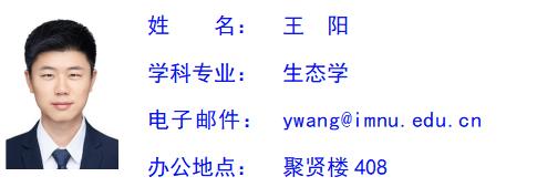 王阳,男,汉族,博士,副教授,硕士生导师,内蒙古包头市人。2019.06 毕业于北京师范大学地理科学学部自然资源专业,获理学博士学位。2024.12-至今,担任bv伟德国际1946副教授,生态系副系主任,主讲本科生课程:《污染生态学》、《生态工程学》、《普通生态学》;研究生课程:《植被生态学》、《生物学前言》。研究方向为气候变化下的生物地球化学循环、生态水文、植物功能生态学、生态系统生态学。主持省部级及以上科研项目3项,参与省部级及以上科研项目3项。发表论文20余篇,SCI收录8篇。