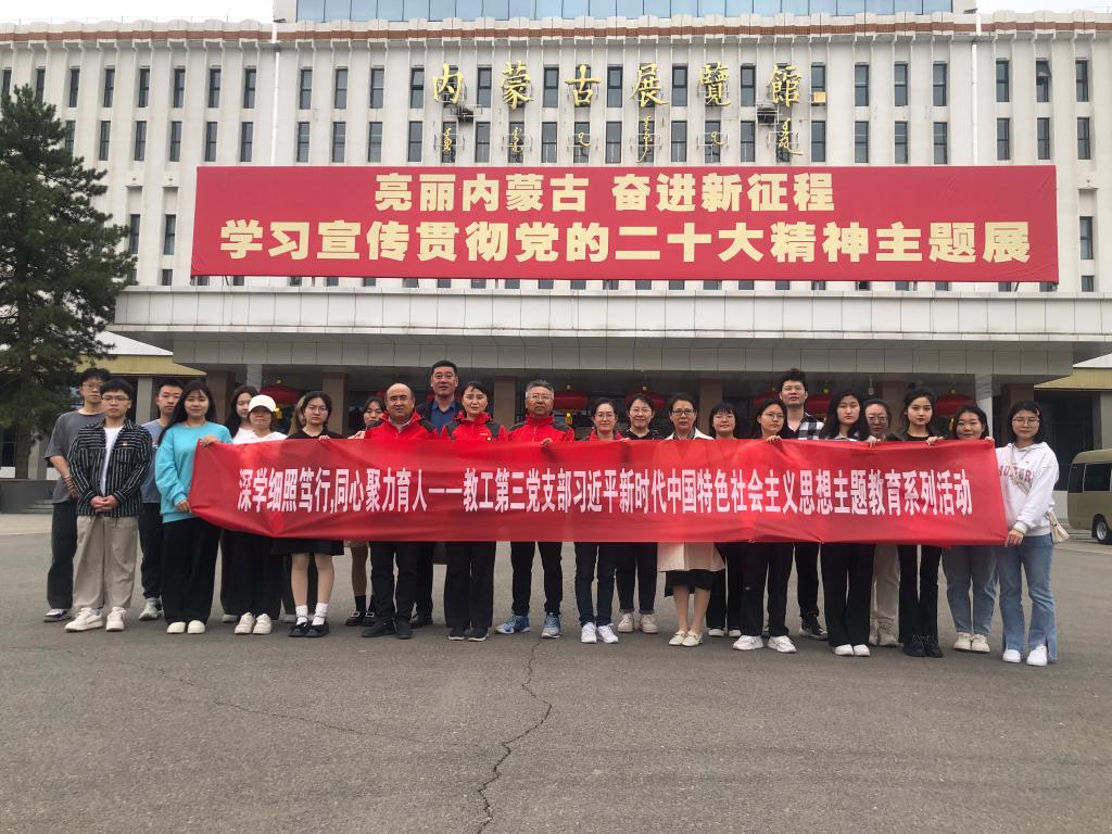 5月10日下午,伟德官网教工第三党支部联合非师范类学生党支部在内蒙古展览馆开展学习贯彻习近平新时代中国特色社会主义思想主题教育党日活动,集体参观“亮丽内蒙古 奋进新征程——学习宣传贯彻党的二十大精神”主题展,并重温入党誓词。