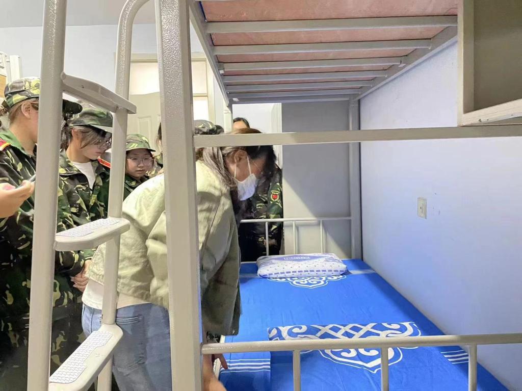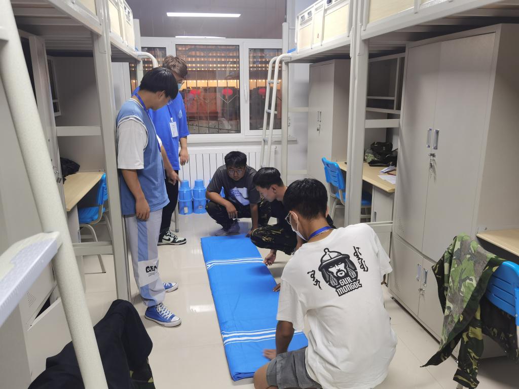 9月8日下午,院学生会各部门积极配合,在bv伟德国际19462022级本科新生军训期间开展了新生内务标准样板间展示活动,旨在加强学生内务水平、规范军事化要求,帮助新生养成良好生活习惯,提升内务水平。活动期间,学生会部门负责人指导各个生班班级负责人参照军队的标准,对宿舍门窗地面整洁、物品摆放规范、被褥叠放平整、整体环境卫生四个部分提出了严格要求并指出了在细节整理方面的注意事项。本次活动在培养新生动手能力,强化个人素养的同时营造良好的军队氛围,为新生们尽早适应军事化管理奠定了基础。活动过程中,学生会指导人员抓紧时间,强调细节,在进行现场示范的同时指导新生进行实践操作。