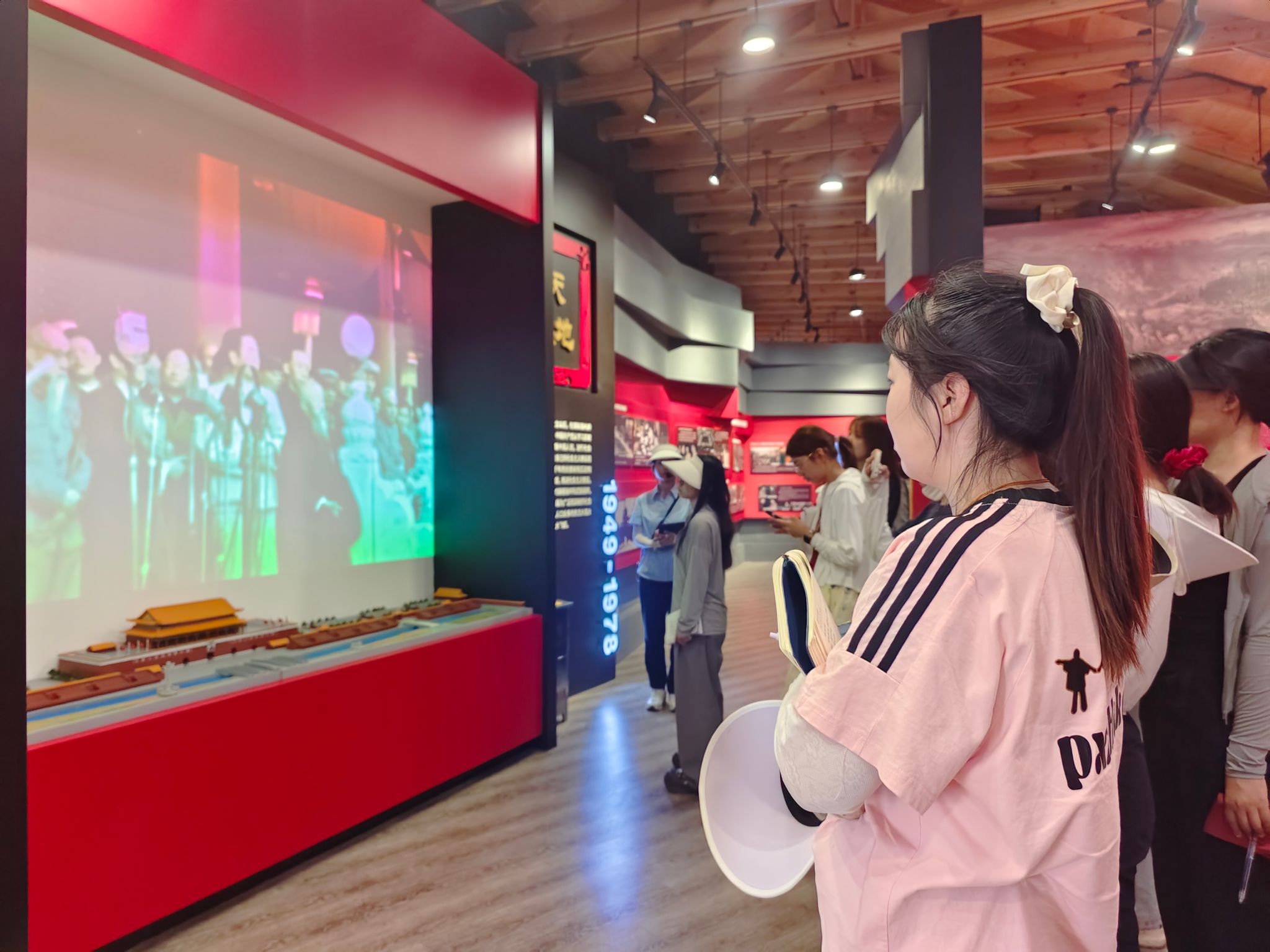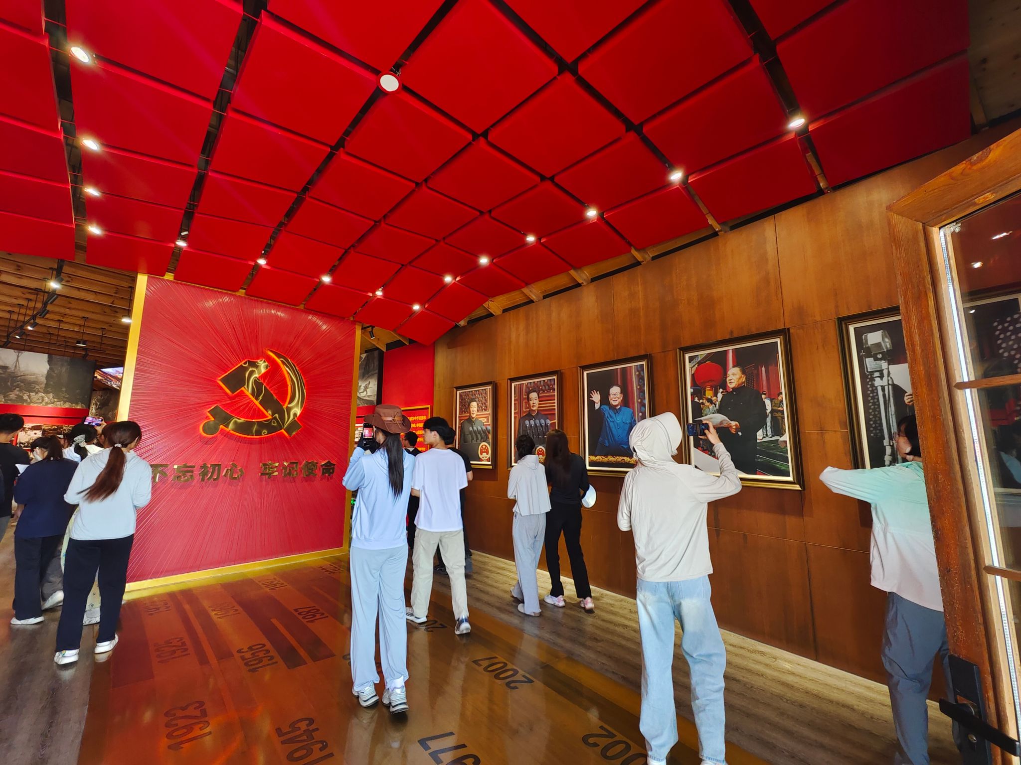 其中,在准能集团的实习成为融合专业认知与思政教育的典型场景。在准能集团黑岱沟煤矿,师生们既惊叹于国家矿山公园的生态蜕变——昔日矿坑如今已是生机盎然的生物多样性公园,由此深刻感悟到“绿水青山就是金山银山”的实践伟力;又在老一辈矿工的奋斗故事与新时代生态治理创新实践的交相辉映中,于学习矿山修复技术的同时,体悟到产业转型背后的责任担当与精神传承。此外,师生们在参观国防教育馆与党史馆中接受了深刻的精神洗礼。国防教育馆内,从近代国防的屈辱记忆到现代国防的科技崛起,从兵器装备的迭代升级到国防建设者的奉献故事,让大家真切体会到“国无防不立”的深刻内涵;党史馆里,一幅幅历史图片、一件件珍贵实物串联起党领导人民从站起来、富起来到强起来的壮阔历程,尤其是煤炭行业在党的领导下支撑国家工业化进程的峥嵘岁月,更让大家对“党的领导是发展的根本保证”有了鲜活而具体的认知。
