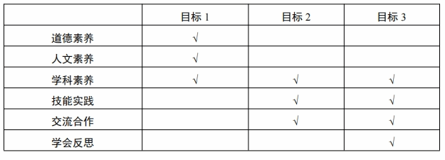 目标1:热爱祖国,拥护中国共产党的领导,践行社会主义核心价值观;具有社会责任感、法治意识、职业道德修养;具备一定的人文素养和艺术修养、生态文明情怀和现代意识;具备良好的科学素养和求实创新意识;具有良好的身体素质和心理素质。