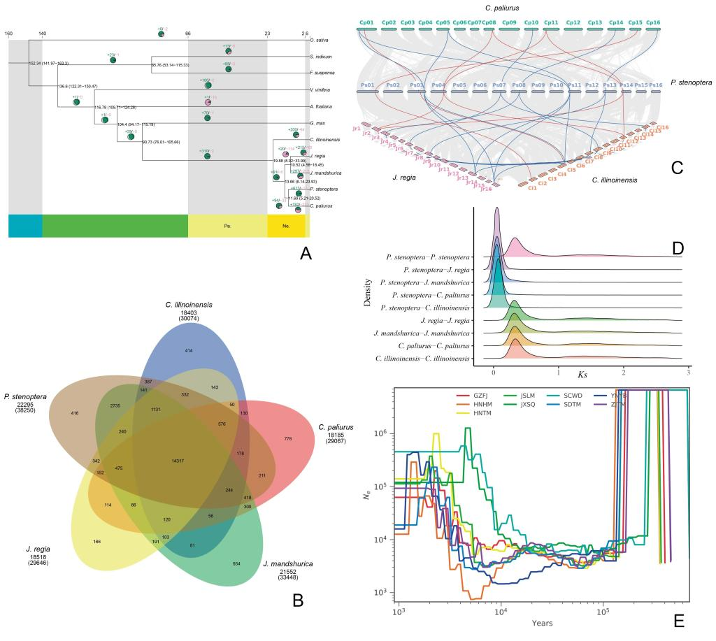 近期,内蒙古自治区高等学校蒙古高原生物多样性保护与可持续利用重点实验室成员、我校bv伟德国际1946李永教授团队在进化生物学领域期刊“Plant Diversity”上发表最新研究成果“Multi-omics analyses provide insights into the evolutionary history and the synthesis of medicinal components of the Chinese wingnut”。