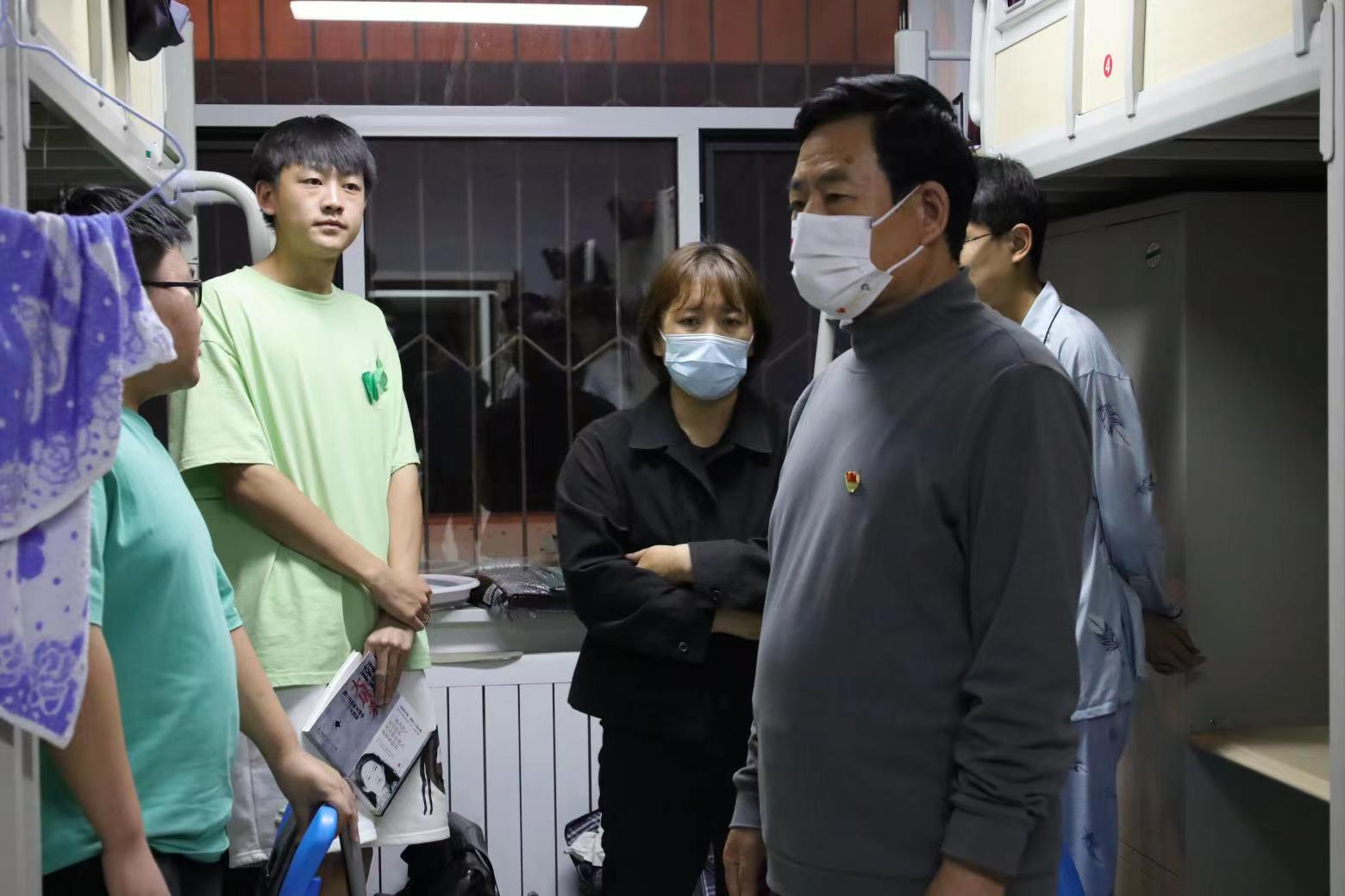 十月风寒,生科情暖。为切实做好疫情防控常态化下的学生管理工作,了解疫情期间学生的学习、生活状况和思想动态,在国庆假期期间,伟德官网党委书记徐忞、学生工作与就业办公室主任默原、辅导员胡日查等老师深入学生宿舍,为学生送去关心和问候。
