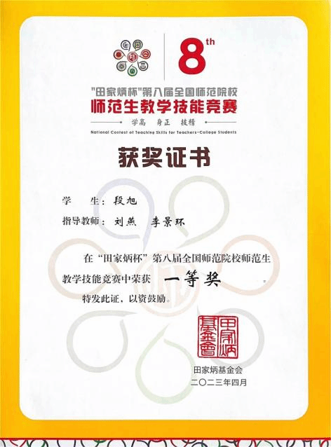 2023年4月16日,“田家炳杯”第八届全国师范院校师范生教学技能竞赛决赛在浙江师范大学成功举办。本届“田家炳杯”全国师范院校师范生教学技能竞赛设汉语言文学、英语、思想政治教育、历史学、数学与应用数学、物理学、化学、生物科学、地理科学共9个学科,竞赛分为初赛、决赛两个环节,初赛共有全国167所师范类院校988名选手参赛,决赛共有全国107所学校294名选手参赛。