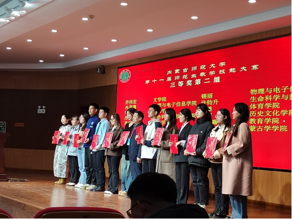 bv伟德国际1946“第十一届师范生教学技能”竞赛于2023年11月4—5日在盛乐校区隆重举行,在本次比赛中,伟德官网经过层层选拔,选派2020级生物科学汉2班的裴琦钰、许钧升和2021级生物科学蒙班的苏日娜共三名同学参加了本次技能大赛,指导教师为李景环、牛艳芳、高峰和乌云高娃。经过赛前师生的精心准备和赛场上的激烈角逐,最终裴琦钰同学获得二等奖,许钧升和苏日娜同学获得三等奖。