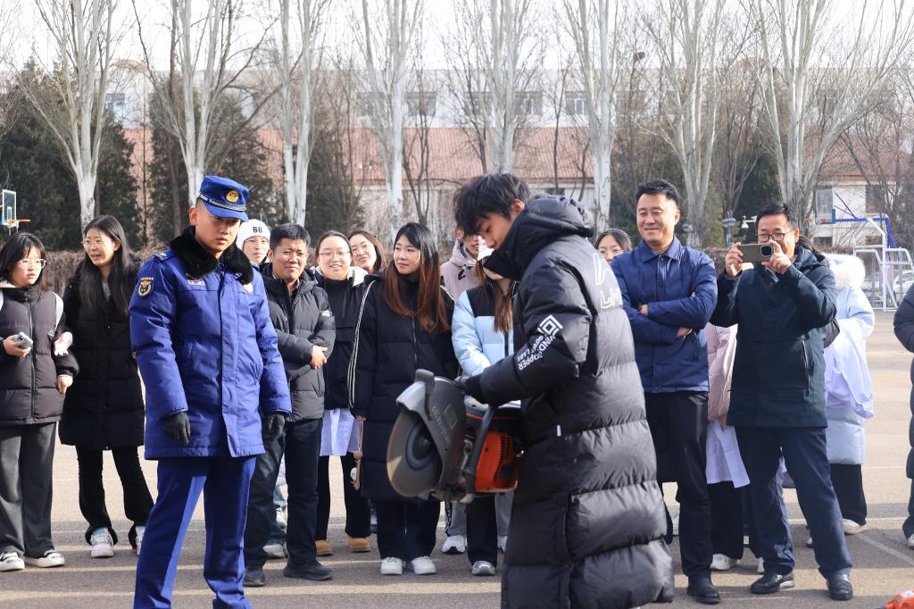 活动伊始,赛罕区山丹街消防救援站宣讲员为全体师生作实验室安全教育培训,详细分析实验室安全风险点,列举了高校实验室安全事故典型案例,同时围绕实验室常见火灾隐患、易燃化学品储存要求、火灾自救与互救等内容进行了详细讲授。