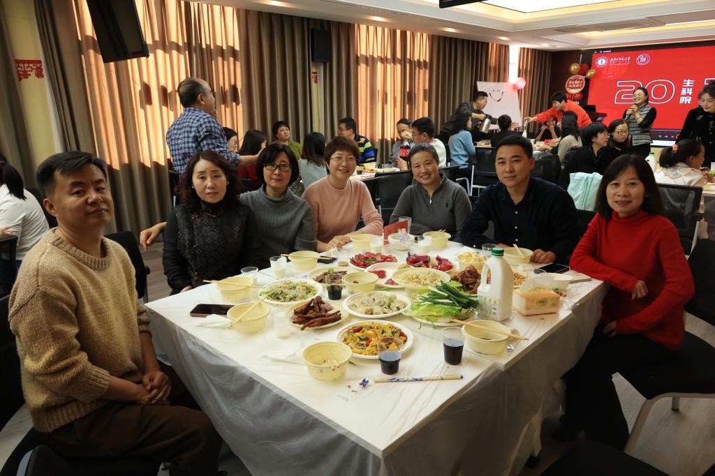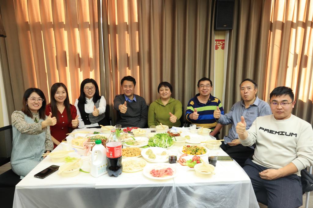 联欢会从热闹的包饺子环节拉开序幕。一大早大家分组协作,和面、擀皮、调馅、包饺子,各显身手。在欢声笑语中,彩色饺子承载着满满的节日气氛,热腾腾的饺子出锅后,全体教职工一边品尝着劳动成果,一边畅谈过去一年的点滴与收获。