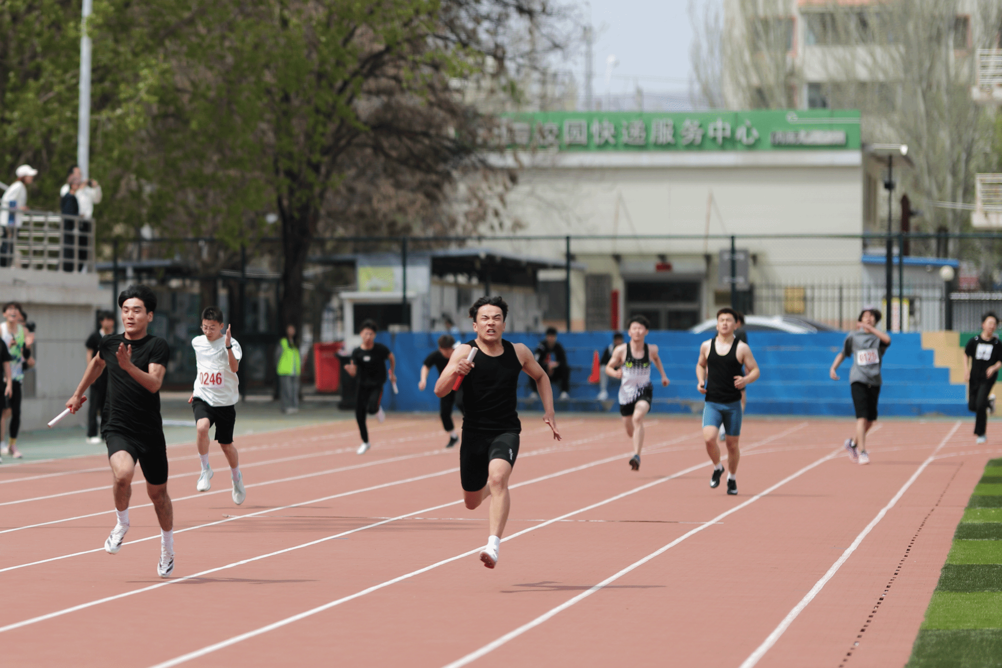 清晨,伴随着雄壮的国歌声,升旗仪式庄严举行,标志着运动会正式拉开帷幕。在随后的比赛中,100米、400米、1500米、跳高、跳远、4×100米接力等传统田径项目依次开展。运动员们英姿飒爽、奋勇争先,尽显青春风采与拼搏精神。