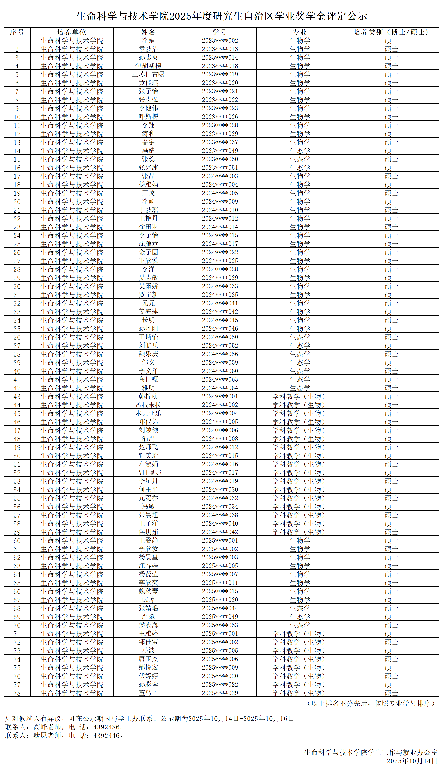 bv伟德国际19462025年度研究生自治区学业奖学金评定公示